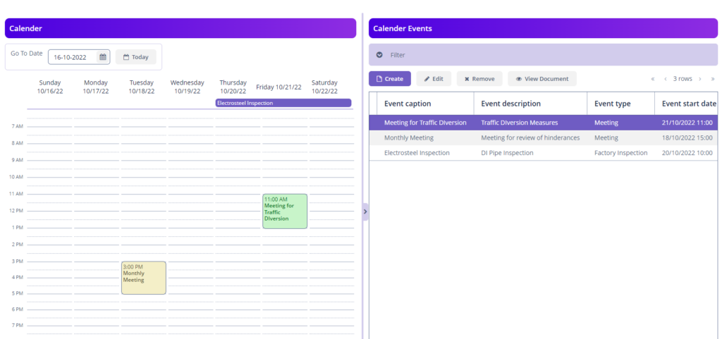 A simple project calendar tool is also available, from where important project activities can be recorded and reviewed.