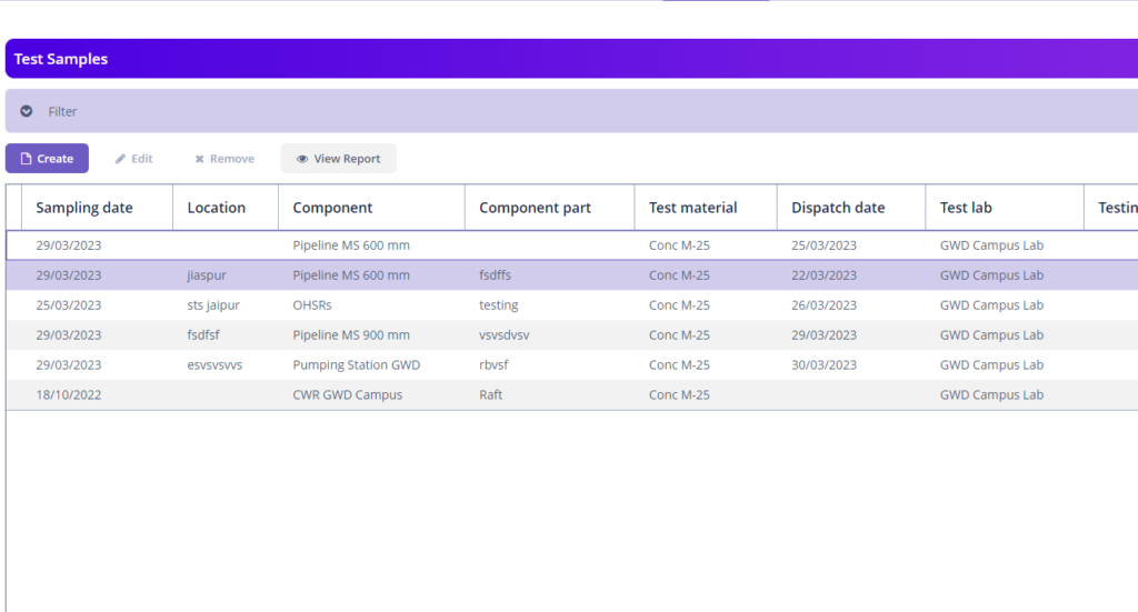 BuildProSoft offers end-to-end material testing management, including sample collection, test dispatch, and result recording. Test parameters for a wide range of materials are preconfigured, and both images and PDF test reports can be uploaded.