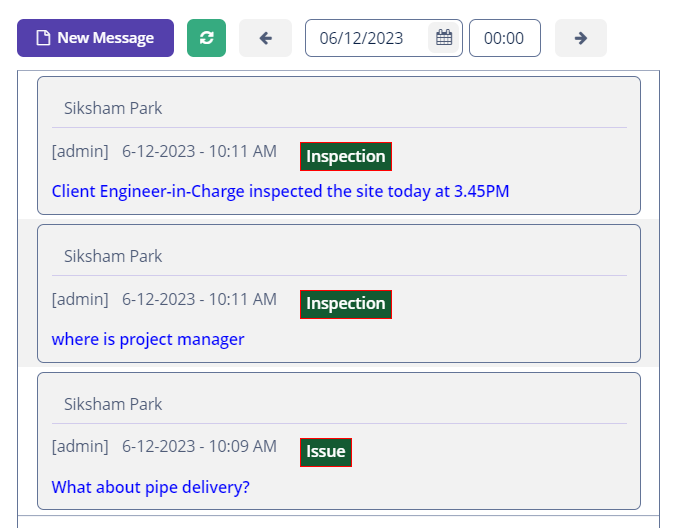 The messages posted in site diary are further categorized such as material, visit, progress, weather, hinderance etc for easy tracing of required information.